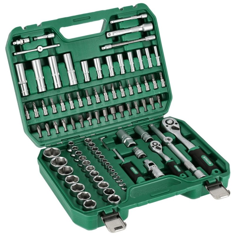 Der 1/2 und 1/4 Steckschlüsselsatz von STALCO besteht aus 94 Teilen, die aus chromgeschweißtem Stahl mit verbesserter Korrosions- und Rostbeständigkeit hergestellt sind.