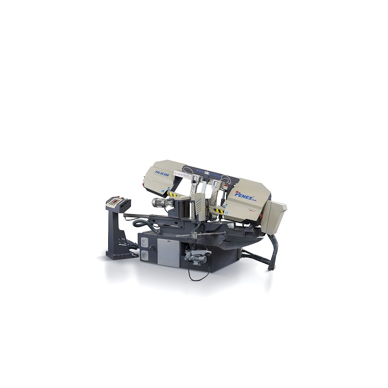 The FENES PTE-2S 350 band saw is an advanced tool that provides precise cutting of a variety of metal materials using diagonal double-sided cuts. With automatic material feeding and advanced hydraulic and hydro-mechanical functions, it enables efficient and safe cutting of metal materials. A suitable cutting range allows the machine to adapt to different types and dimensions of materials.
