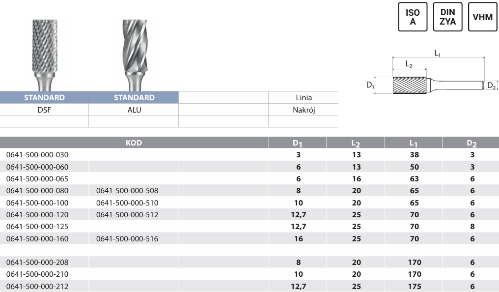 A-ZYA - Limes métalliques rotatives DIN ZYA ISO A VHM