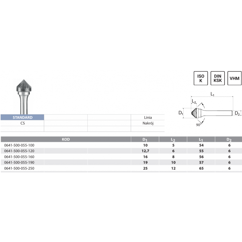 K-KSK - Fraise rotative 90º pour métal DIN KSK ISO K VHM
