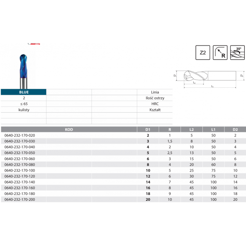 Frez BLUE VHM do materiałów bardzo twardych do metalu