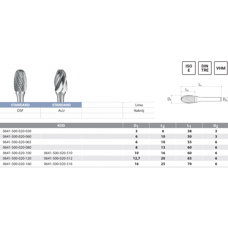 E-TRE - Pilnik owalny obrotowy do metalu DIN TRE ISO E VHM